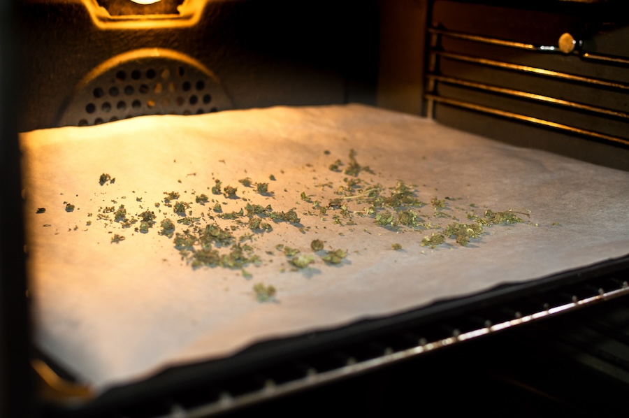 Think of decarboxylation as activating your ground cannabis. When you smoke weed, this happens automatically due to high heat. But for a proper brownie recipe, we need to do this step separately, and carefully. A good oven temperature range is between 220-245°F, but we recommend sticking to low heat at 220°F for 30-40 minutes.