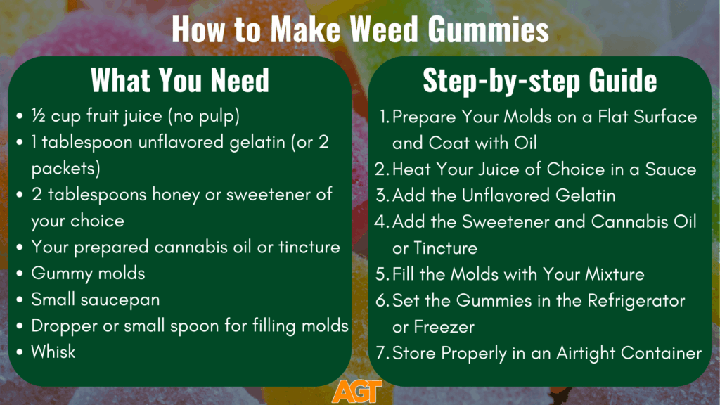 Edibles hit differently than smoking or vaping. They take longer to kick in, often 30 minutes to 2 hours, and the effects can last much longer. If this is your first time with homemade edibles, start with one gummy and wait at least 90 minutes before deciding if you want more. You can always eat another one, but you can’t undo a high that’s too intense.