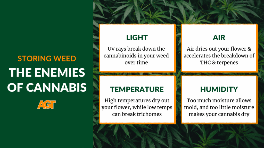 Light, air, temperature, and humidity are the four factors that determine how long your cannabis stays fresh. Understanding how each one affects your weed helps you avoid the most common storage pitfalls.